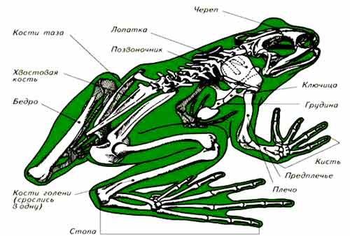 Стопа заканчивается пятью пальцами, которые у лягушки соединены плавательной перепонкой.