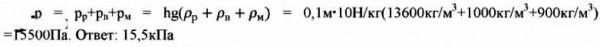 Ртуть, воду и машинное масло налили в цилиндрический сосуд. Толщина слоя каждой жидкости равна 10 см. Чему равно давление на дно сосуда?