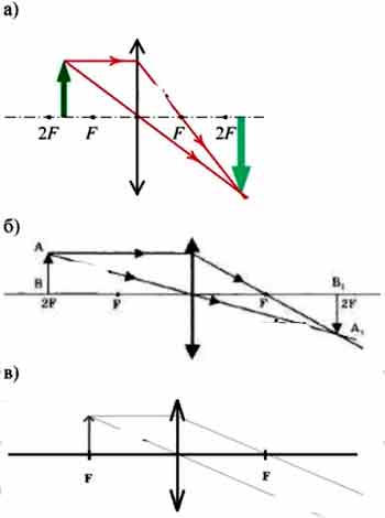 Постройте изображение предмета в виде отрезка АВ в тонкой собирающей линзе, если он расположен перпендикулярно главной оптической оси и находится