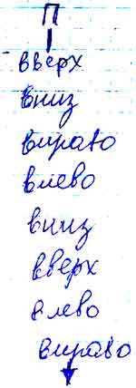 Вот программа П (в которой пропущены некоторые команды) и позиции Робика до и после выполнения программы П. Напиши в окнах пропущенные команды.