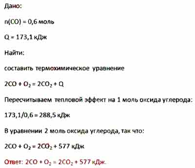 Составьте термохимическое уравнение горения оксида углерода (2), если при горении 0,6 моль оксида выделилось 173,1 кДж теплоты
