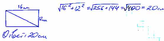 Стороны прямоугольника 12 см и 16 см. Чему равна диагональ?