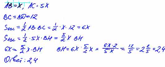 На рисунке ABCD — прямоугольник, ВН _I_ АС, сторона АВ в 5 раз меньше диагонали. Найдите ВН, если АО = 12.