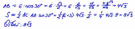 Используя данные, указанные на рисунке, найдите площадь треугольника ABC.
