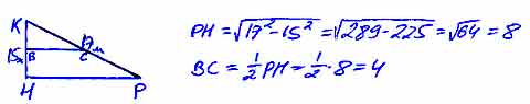 В треугольнике КРН угол Н — прямой, РК = 17 м, КН = 15 м. Найдите длину средней линии ВС, если В е КН, С е РК.