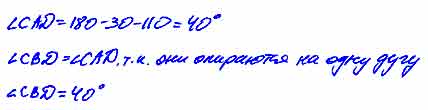 На рисунке ∠C = 30°,  ∠AEC = 110°. Найдите  ∠CBD.