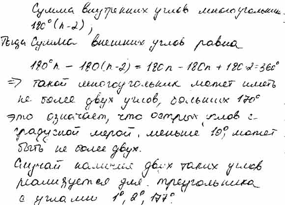 Сколько углов с градусной мерой меньше 10° может быть в выпуклом многоугольнике?