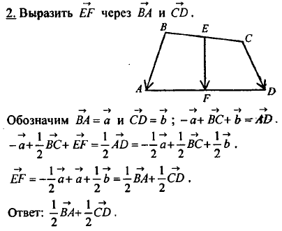 Е и F — середины сторон ВС и AD четырехугольника ABCD. Выразите вектор через векторы и .
