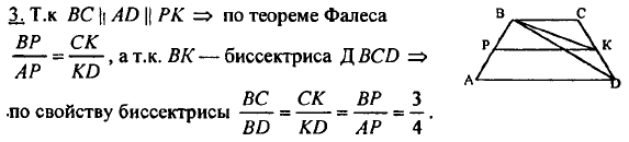 На боковых сторонах АВ и CD трапеции ABCD взяты точки Р и К соответственно так, что РК || AD, ∠DBK = ∠KBC, ВС : BD = 3:4. Найдите BP : РА.