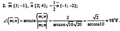 Используя микрокалькулятор, найдите угол между векторами m и -1/2n если m {3; -1}, n {2; 4}.