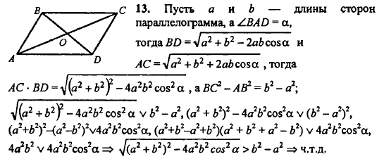 Докажите, что разность квадратов длин смежных сторон параллелограмма меньше произведения длин его диагоналей.