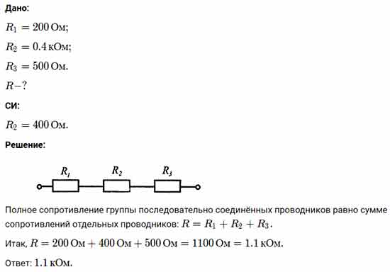 Чему равно полное сопротивление участка цепи, состоящего из последовательно соединенных резисторов R1 = 200 Ом, R2 = 0 40 , кОм, R3 = 500 Ом?