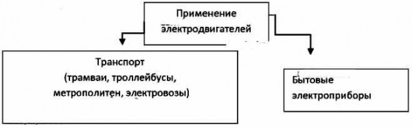 Изобразите схематически, в каких областях применяют электродвигатели.