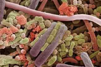 На изображении можно увидеть бактерий, обитающих в огромном количестве на поверхности языка. Бактерии — это одноклеточные организмы. Некоторые из них можно узнать по наличию жгутиков.