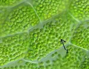 На фотографии под цифрой 1 отмечен хлоропласт или пластида.
