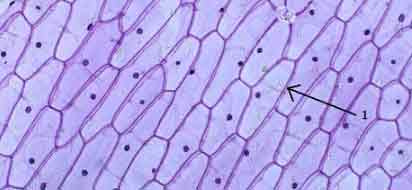 Ольга рассмотрела препарат кожицы лука под микроскопом и сделала фотографию. Что отмечено на фотографии под цифрой 1?