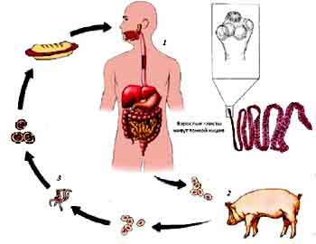 Рассмотрите рисунок, на котором представлен цикл развития свиного цепня. Какой цифрой обозначен на рисунке основной хозяин?
