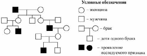 В медицинской генетике широко используется генеалогический метод. Он основан на составлении родословной человека и изучении наследования того или иного признака. В подобных исследованиях используются определённые обозначения. Изучите фрагмент родословного древа одной семьи, у некоторых членов которой встречается гемофилия (несвертываемость крови).