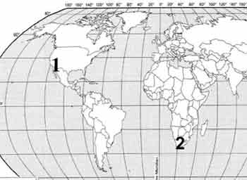 Точка 2 — 32° ю. ш.; 20° в. д.