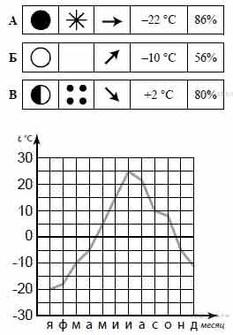 Из условия следует, что это рисунок А. погода в этот день была пасмурная, шел снег, дул западный ветер, температура воздуха была −22°С, относительная влажность воздуха составляла 86%.