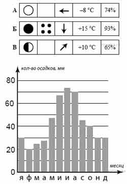 Из условия следует, что это рисунок Б. Погода в этот день была пасмурная, шел дождь, дул северный ветер, температура воздуха была +15°С, относительная влажность воздуха составляла 93 %.