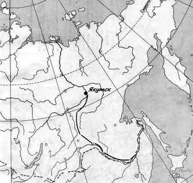 Подпишите на карте город Якутск и пунктирной линией покажите поход русского землепроходца Ерофея Хабарова.