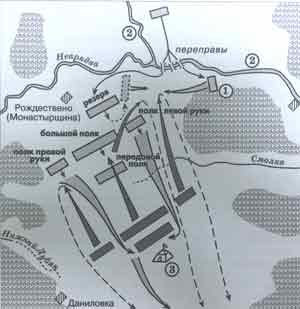 Заполните пропуск в предложении: «Битва, представленная на схеме, состоялась в _ веке». Ответ запишите в виде слова. Назовите имя военачальника, шатёр которого обозначен на схеме цифрой «3».