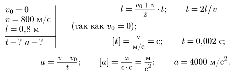 Пуля вылетает из ствола винтовки длиной 80 см со скоростью 800 м/с. Считая движение внутри ствола равноускоренным, определите время движения пули внутри ствола и ускорение.