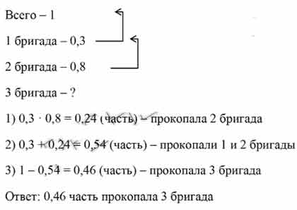 Первая бригада прополола 0,3 поля, занятого свёклой. Вторая бригада 0,8 того, что прополола первая бригада. Оставшуюся часть прополола третья бригада. Какую часть поля прополола третья бригада?