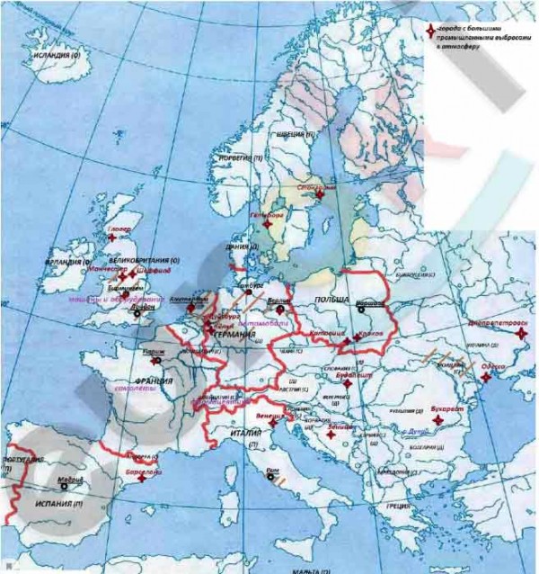 3.    Обозначьте и подпишите названия городов - источников наибольших промышленных выбросов в атмосферу.