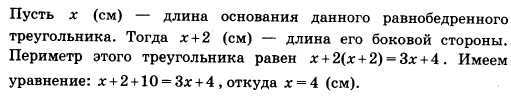 Боковая сторона равнобедренного треугольника на 2 см больше его основания и на 10 см меньше периметра этого треугольника. Найдите основание данного равнобедренного треугольника.