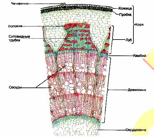 Рассмотрите под микроскопом готовый микропрепарат «Строение стебля липы. Поперечный срез». Определите, какие слои клеток составляют стебель. Схематично зарисуйте увиденное и подпишите слои.