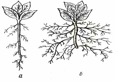 Прищипку корней растений делают для того, чтобы боковые корни начали активно развиваться, а главный корень перестал расти вниз. Это делается для лучшего закрепления растения в почве и увеличения площади поверхности корневой системы.