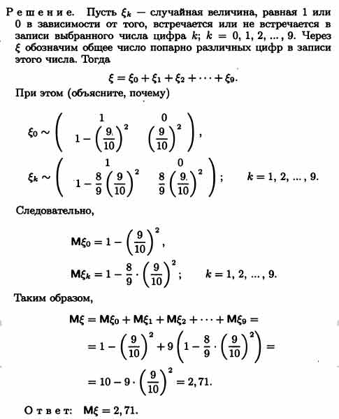 Из всех трехзначных чисел (от 100 до 999) наугад выбрали одно число. Вычислить математическое ожидание числа попарно различных цифр, встречающихся в записи этого числа.
