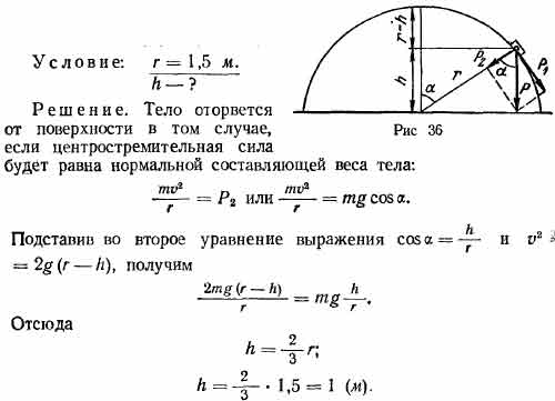 Тело скользит без трения по поверхности полусферы, имеющей радиус 1,5 м. На какой высоте тело оторвется от поверхности полусферы