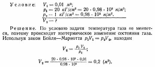 В газовом баллоне емкостью 0,01 м3 находится газ под давлением 20 кг/cm2. Какой объем займет газ, если, не изменяя его температуры, открыть вентиль баллона? Окончательное давление 1 кг/см?.