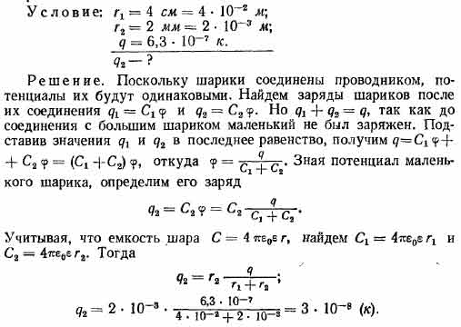 Шарику радиусом 4 см сообщен заряд 6,3 • 10-7 к. Какой заряд перейдет на шарик радиусом 2 мм, если его соединить с большим шариком? Емкостью соединительного проводника пренебречь.