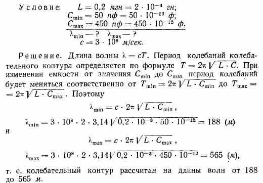 Колебательный контур состоит из катушки с индуктивностью 0,6 мгн и переменного конденсатора, емкость которого может меняться от 50 до 450 пф. На какие длины волн рассчитан контур?