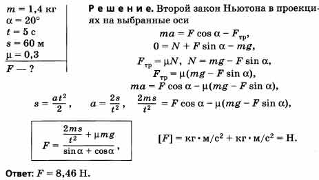Тело массой m = 1,4 кг, лежащее на горизонтальной поверхности, под действием некоторой направленной под углом а = 20° к горизонту силы за время t = 5 с проходит горизонтальный путь s = 60 м. Определите величину этой силы, если коэффициент трения u = 0,3.