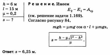 С наклонной плоскости высотой h = 6 m и длиной I = 15 m скользит груз. Определите путь s по горизонтали, который пройдет груз до остановки, если коэффициент трения u = 0,2