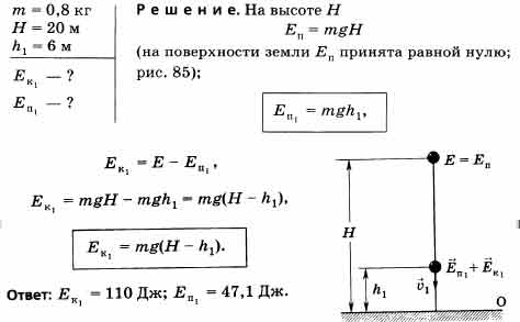 Тело массой m = 0,8 кг падает с высоты Н = 20 m без начальной скорости. Определите кинетическую Е и потенциальную Е энергии тела на высоте h = 6 м. Сопротивление воздуха не учитывать