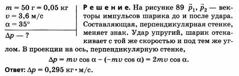 Шарик массой m = 50 г, летящий со скоростью v = 3,6 м/с, ударился упруго о стенку под углом а = 35° к горизонту. Определите изменение импульса р при ударе