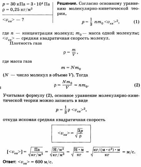 Определите среднюю квадратичную скорость <vKB> молекул идеального газа, плотность р которого при давлении р = 30 кПа составляет 0,25 кг/м3.