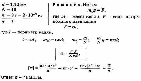 Определите поверхностное натяжение а воды, если диаметр d отверстия пипетки, из которой вытекает вода, равен 1,2 мм, а масса N = 49 капель воды m = 2 г.