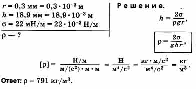 В капилляре радиусом г = 0,3 мм жидкость поднялась на высоту h = 18,9 мм. Определите плотность р жидкости, если ее поверхностное натяжение а = 22 мН/м