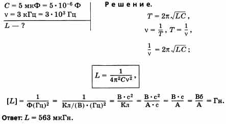 Определите индуктивность L колебательного контура, если его электроемкость С = 5 мкФ, а частота v свободных электромагнитных колебаний равна 3 кГц