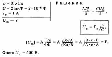 Пренебрегая сопротивлением колебательного контура, содержащего катушку индуктивностью L = 0,5 Гн и конденсатор емкостью С = 2 мкФ, определите максимальное напряжение Um на обкладках конденсатора, если максимальная сила тока Im в контуре равна 1 А