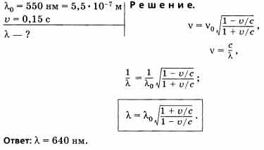 Источник монохроматического света с длиной волны Хо = 550 нм движется от наблюдателя со скоростью v = 0,15с вдоль соединяющей их прямой. Определите длину волны X, которую зарегистрирует спектральный прибор наблюдателя