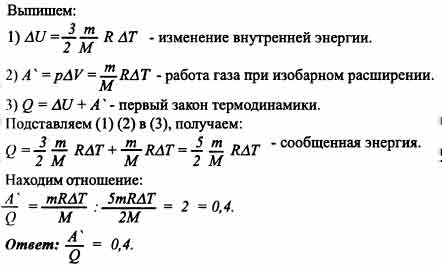 Какая часть энергии, сообщенной идеальному одноатомному газу при изобарном его нагревании, идет на совершение работы?