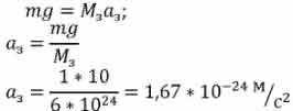 Оцените ускорение Земли относительно инерциальной системы отсчёта, вызванное действием на Землю свободно падающего камня  массой  m  = 1  кг.  Массу  Земли  считайте  равной